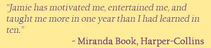 “Jamie is the best trainer available today on the East End and one of the top in the NYC area…excels both in class and private training…with patience, energy, flexibility, enthusiasm and humor. Anybody fortunate enough to train with Jamie will experience a life change…both physically and mentally.”